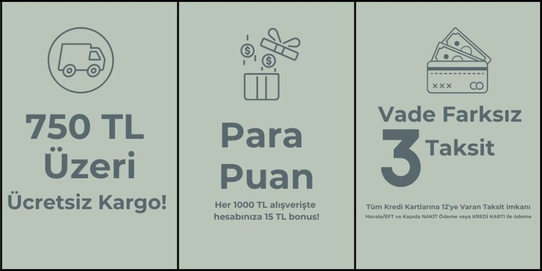 Tüm Kredi Kartlarına 12'ye Varan Taksit, Havale/EFT ve Kapıda NAKİT Ödeme, Kapıda KREDİ KARTI ile ödeme