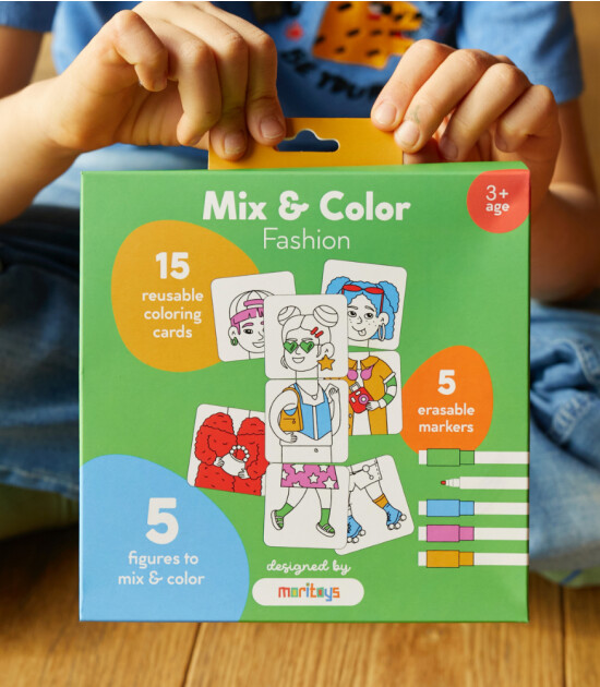 * 15 adet silinebilir kart ve 5 adet keçeli boya kalemi sayesinde 125 farklı kıyafet kombinasyonu oluşturulabilen bu eğlenceli boyama oyunu ile çocuklar hayallerindeki karakterlerlere hayat verecekler!