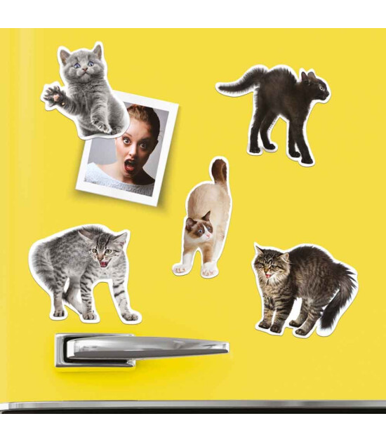 Bu sinirli kedicikler buzdolabınızda kesinlikle dikkat çekecek... Bu şişman ve kabarık arkadaşlarla buzdolabınıza veya herhangi bir manyetik yüzeye eğlence getirin!