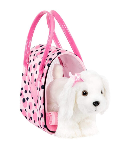 Bu tatlı Maltese köpek, özel taşıma çantası ve aksesuarlarıyla, çocuklarınızın en yakın arkadaşı olmaya aday..